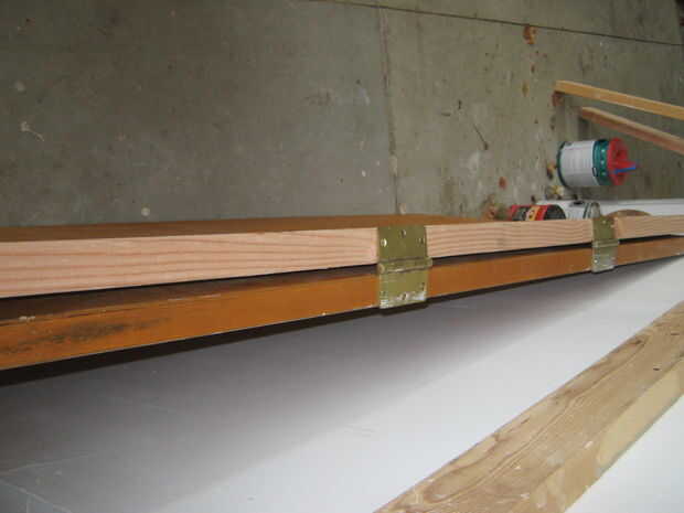 La puerta estaba un interior hueco completo tamaño puerta 30" de ancho. Corté la puerta hasta 60". con las bisagras, que conectado a otro 2 x 4 que era 62" de largo
