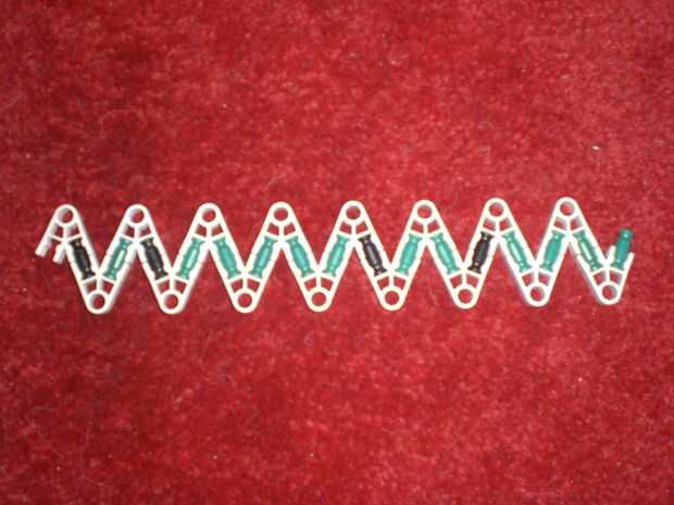 Cuadro 1: En primer lugar hacen de este Foto 2: A continuación hacerla en forma circular. Cuadro 3: Sujete la varilla final verde y el conector del extremo gris junto.