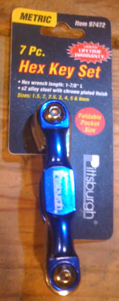 De Instructable había visto fueron usando una herramienta de bicicleta para las llaves.  Pude encontrar una versión más barata en carga de puerto para alrededor $5 para las tuercas hexagonales.  era fácil de desmontar y tenía un montón de piezas de repuesto a utilizar, así.  Usted necesitará algunas piezas adicionales de hardware para: