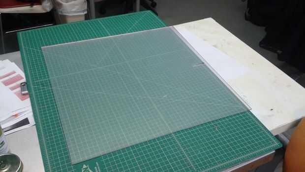 1. Basado en sus medidas de la mesa, utiliza tu regla para marcar el tamaño de plexiglás que desea cortar.