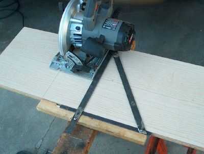 Este es un especial corte guía que hice para usar con mi sierra circular. Desde entonces era un Instructable, he hecho un par de modificaciones. Originalmente usaba una construcción soldada, pero que causa distorsión de calor. Yo de tierra hacia fuera de las soldaduras y trabajó con un archivo para enderezar lo que todavía tenía algunas distorsiones. Entonces sujetó las piezas perforando, golpeando ligeramente y con tornillos. También he añadido un trozo de madera en la parte superior. El primer corte con la sierra demostrada donde la hoja se corta para siempre después y hace alineación con la Sierra de corte fácil.