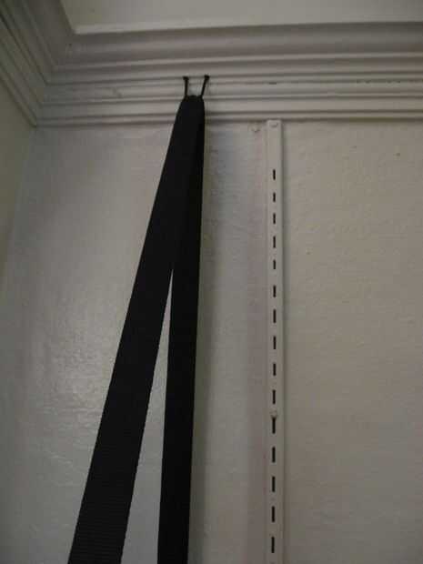 tenía dos piezas de 1" tubular correas alrededor de doce pies de largo. Estos recorren los lazos que creó en el paso pasado. Los extremos se atan con un nudo agua.