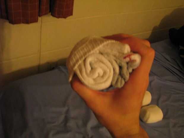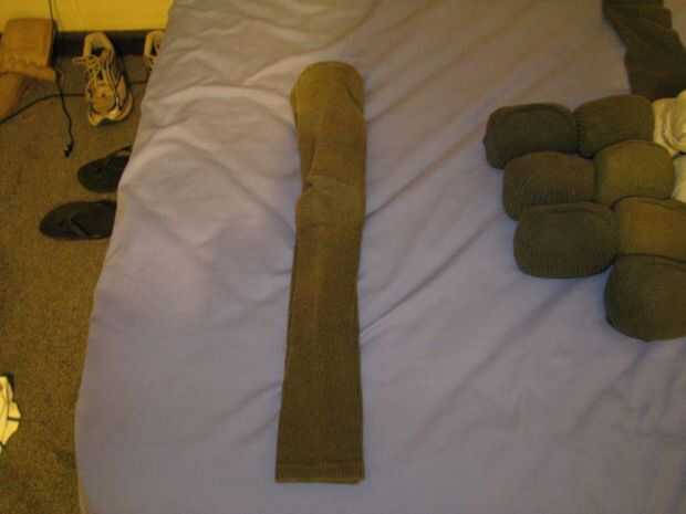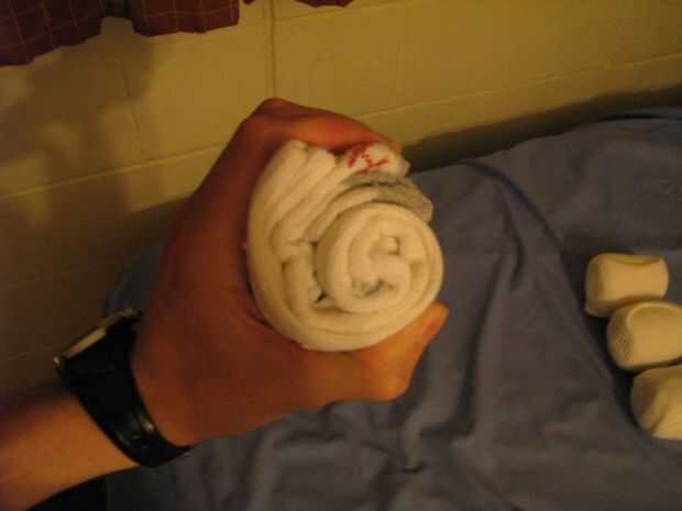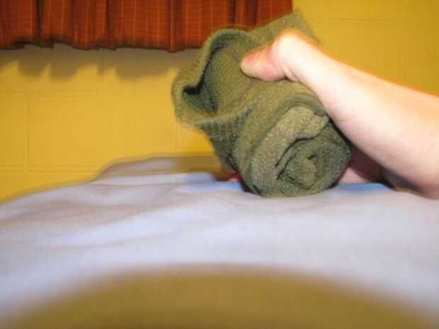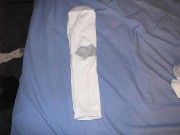 (4) Tome un extremo del calcetín como un ancla y tirando firmemente con el otro extremo.