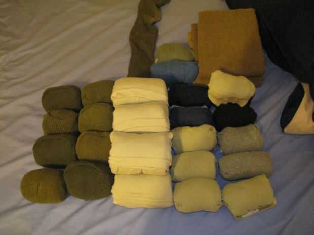 Ahí lo tienen. Los rodillos son lo suficientemente pequeños para colocarse en zapatos, botas y también su fácil de empacar ya que solo tienes que agarrar 1 rollo de calcetines, 1 rollo de ropa interior y 1 camiseta para cada día del viaje.