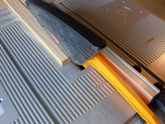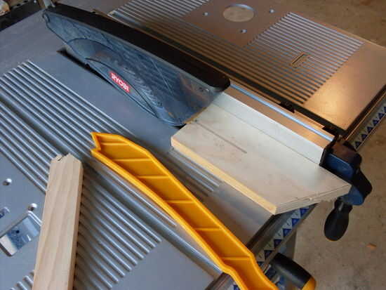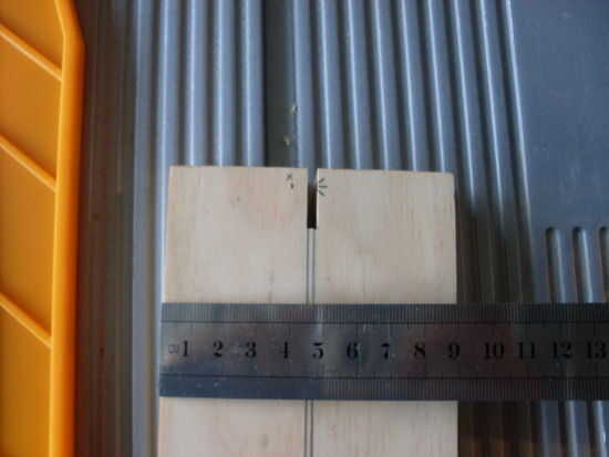 Luego arrancó varias placas en la mitad. Usé un pedazo de desecho para comprobar que mi guía fue fijado a la distancia adecuada de la hoja.