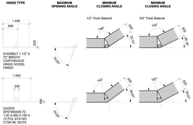Si usted decide que usted desea utilizar diferentes bisagras y chapas de madera ten en cuenta que hay un criterio muy específico de rendimiento para su acoplamiento. Diferentes acoplamientos de bisagras y espesor de madera contrachapada producen diferentes formas posibles. Por encima son algunas imágenes que muestran las limitaciones del ángulo diedro del acoplamiento y el propio diseño. Aviso la capacidad plegable bisagra/madera contrachapada se empareja bien con eso del diseño. Esta doblado ejercicio placa que tenía que reconciliar lo que pude sueño con lo que los materiales me dejaba salirse con la. Fue muy divertido con una forma que trabajó con mi kit de piezas.