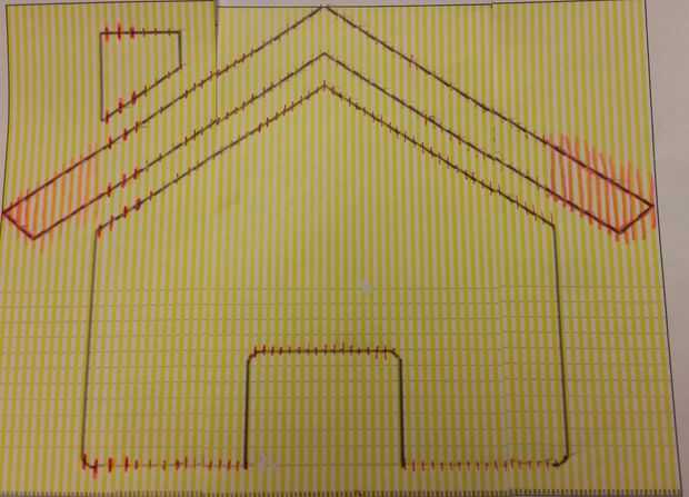 - Cada página puede sólo tienen 2 pliegues, así que una vez el área que tiene chimenea, azotea, y líneas de la casa, tienes a páginas alternativas. Marca 'la azotea' y 'house', luego 'chimenea', repita: 'techo,' 'casa', 'chimenea'. 'azotea,' 'casa', 'chimenea'...