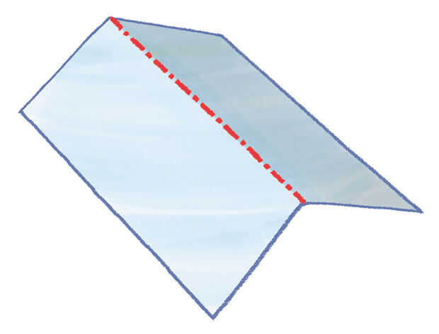 La hoja azul de papel anterior muestra un pliegue de montaña, donde usted dobla los bordes del papel en la dirección opuesta.