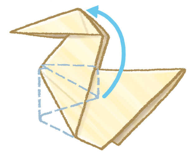 Sostiene el cuerpo firmemente por debajo de la cola, tirar el cuello hacia arriba y aplanar. Luego tire el pico hacia afuera a la izquierda y aplanar.