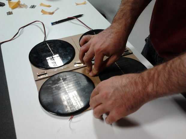 Observe la capa extra de madera contrachapada pegada debajo de las bisagras que permiten el panel plana plegada.