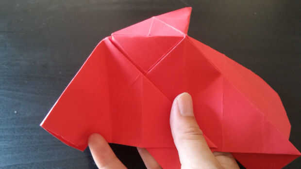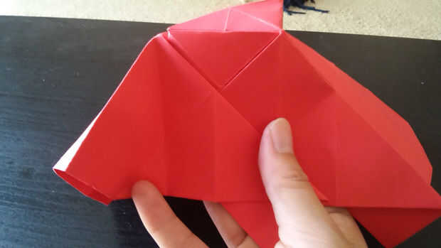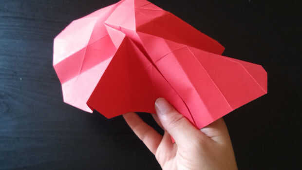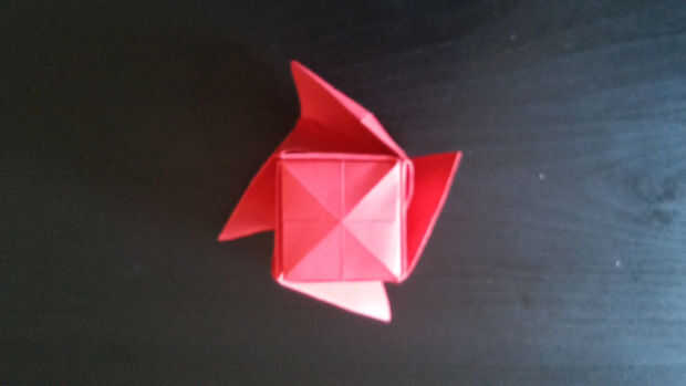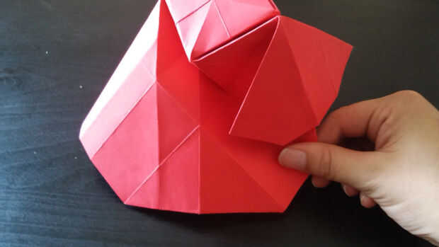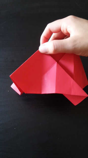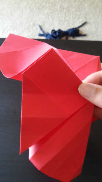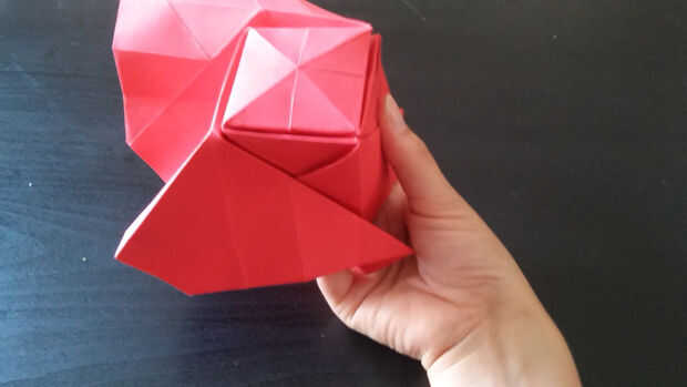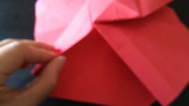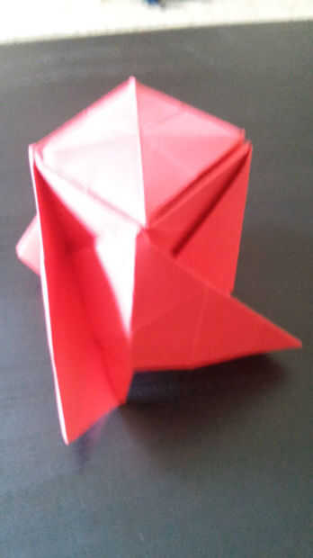 4. los pliegues deben haber creado los lados de la flor y debe ser un prisma rectangular como estructura delante de usted.