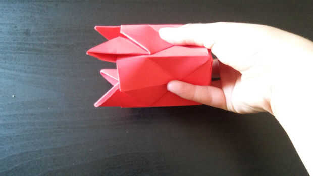 Observe eso Triángulo extra de la aleta a cada lado del doblez. Vamos a deshacernos de eso ahora