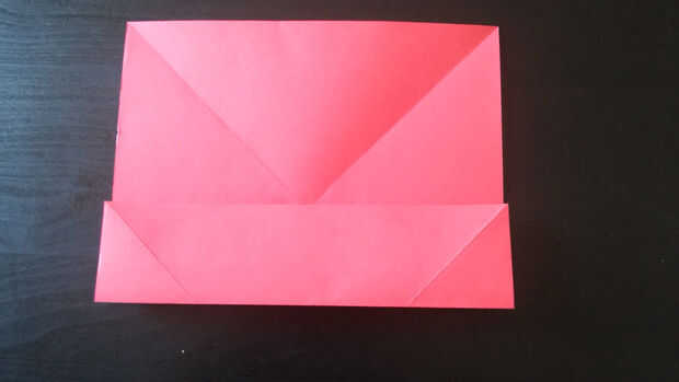 6. doblar horizontalmente desde la parte inferior del papel 3/4 del camino hasta el pliegue más alto