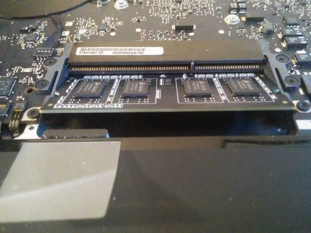 - Alineación de la Ram en la ranura inferior y empujándolo a su lugar;