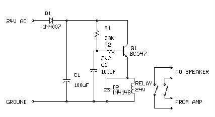 Teniendo en cuenta que al cambiar el amplificador suena menos bang en altavoces (lo que es normal para una clase mal) así que, he añadido un circuit eso retrasa los altavoces de la activación.