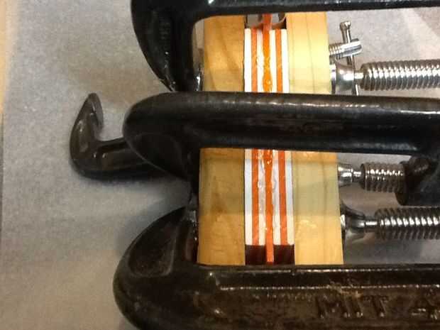 , Básicamente, hacer el mismo proceso que el pegamento de la manija hacia arriba, hacer la hoja de la pieza media. Después de su afianzado con abrazadera, pie...