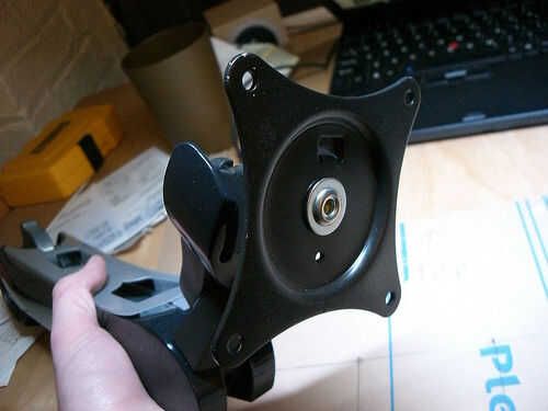 Estaba tratando de encontrar y comprar un fino soporte de montaje VESA para mi nuevo monitor, sin suerte. Incluso el más fino era demasiado gruesa. Así que probé uno solito. Y lo hizo. Las piezas son muy baratas, no hay cualquier operación complicada