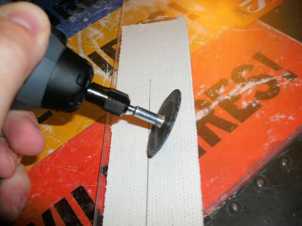 Es importante mantener la herramienta dremel recta a lo largo de la línea de corte. La herramienta debe ser perpendicular a la línea de corte y ligeramente por encima de la superficie de corte. Corte con un movimiento de golpear ligeramente hacia abajo. Cuando estás en la sección de 1/2-1 pulgadas que eres la broca perforar en la cartulina y girar más libremente. Pasar a la siguiente sección pequeña. La tercera imagen es lo que pasa cuando no usas la cinta. la cuarta foto es un borde limpio al usar la cinta. La última foto es una mirada de producto terminado en una esquina con la cinta de corte bueno y lo malo corta.