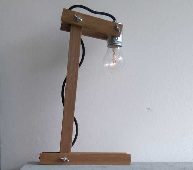 esta lámpara pequeña es de 25cm de alto. Los pies están hechos de madera de roble. Un saladebowl compostable se utiliza como una pantalla.Paso 1: Hacer y fijación de los pies Corte las dos piezas de madera de roble (18x12mm) en un ángulo de 80 grados