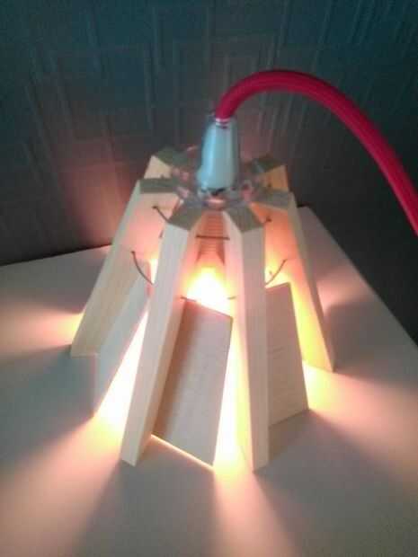 Nr. 0050 (aquí junto a nr. 0001) es una versátil lámpara de cinco segmentos de madera. La idea era hacerlo según el principio KISS.Paso 1: para trabajar la madera 1. corta doce piezas idénticas de madera 200x9x28mm de medición.2. taladro 8mm agujeros