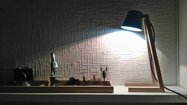Esta lámpara de escritorio es por el principio de keep-it-simple-y-tonta (beso). Es una estructura bastante similar como nr. 0056. las únicas diferencias son las dimensiones de la madera pies y el tamaño y el ángulo de la pantalla.