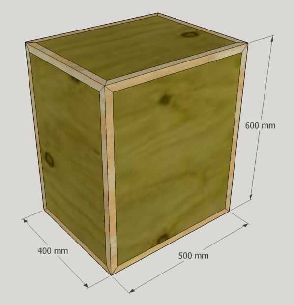 Cajas pliométrico pueden ser bastante grandes, y no estiran mis recortes para hacer un 20 × 24 × 30"(un tamaño común). Hice mía 16 × 20 × 24" en lugar de otro (realmente 400 × 500 × 600 m m y todas las medidas de aquí en adelante será en mm). Eso significaba que necesitaba lo siguiente: