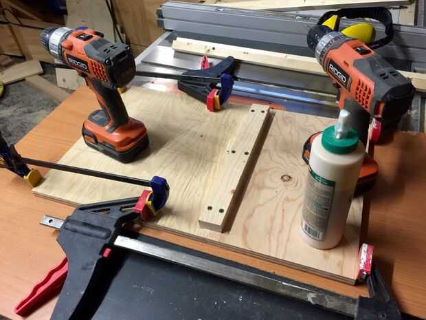 Pegamento y abrazadera y cualquier sujetadores que desea utilizar. He usado tacos Miller porque me gustan mucho y de esa manera el cuadro podría ser enteramente de madera, pero los tornillos están bien también. He añadido 2 clavijas de Miller en cada borde, por ninguna otra razón que tenía 49 a mano y este diseño consumiría 48. Me froté el aserrín en los boquetes donde la cola para madera exprimido hacia fuera - esta es una manera barata y fácil para llenar las grietas. Fui otros agujeros del mismo modo (y había mucho, toda la madera se reciclan).