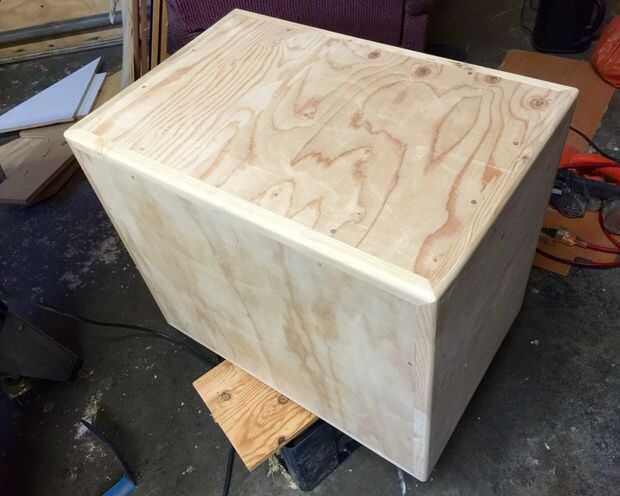 Correa de lijar con lija de grano 80. Me gustó el aspecto con filos cortantes, pero la idea de hacer la caja con ningunos bordes de madera y no los sujetadores del metal fue para que me pude ronda sobre los bordes y todavía se ven bien, así que lo hice, luego lija otra vez con una lijadora orbital y grano 120, entonces polyurethaned todo dos veces.