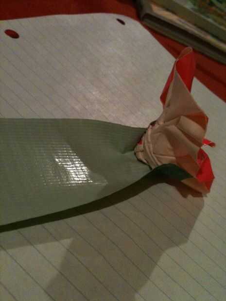 ahora usted puede hacer una hermosa flor en menos de diez minutos. Mi nombre es Elías y yo estoy aquí para mostrarle cómo.Paso 1: Conducto cinta de rosa VideoVideo del introPaso 2: materiales Inicio con una pajita y cinta de cualquier color o colore