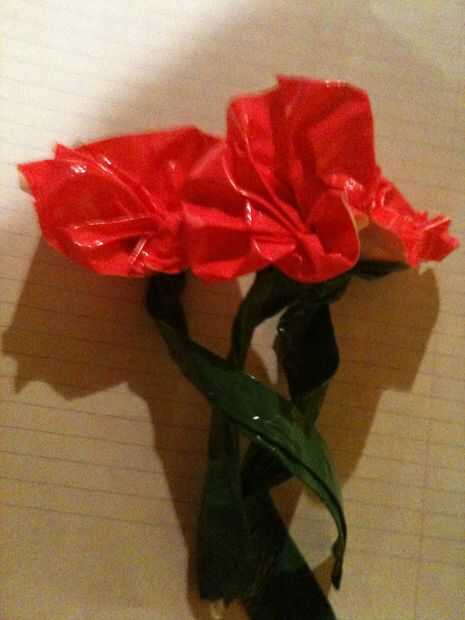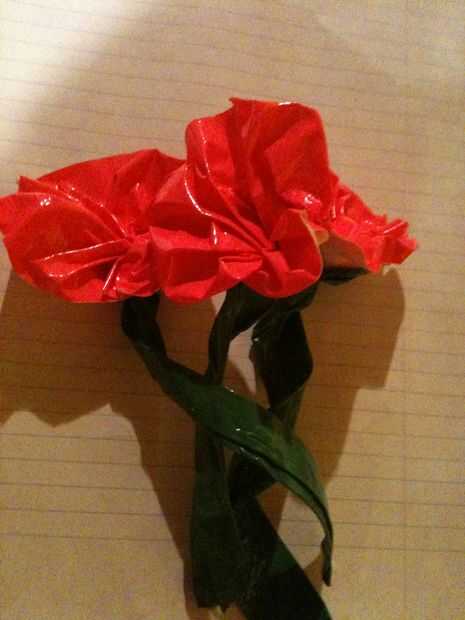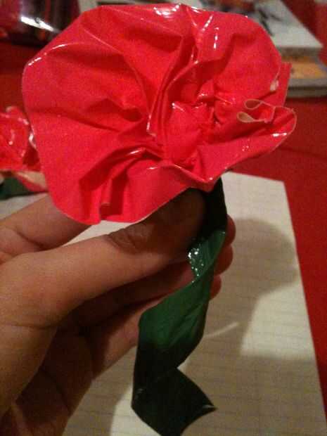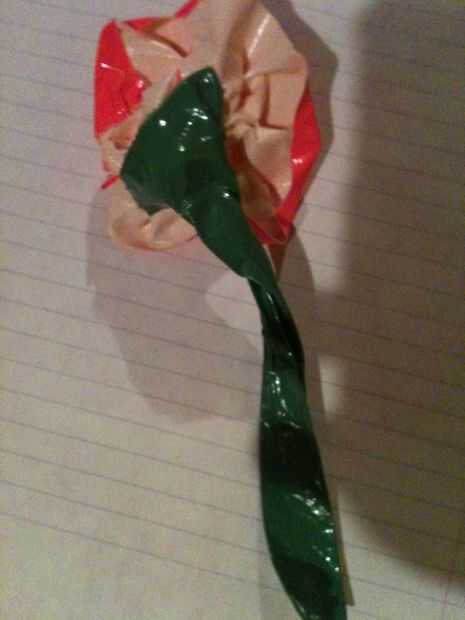 ahora usted puede hacer una hermosa flor en menos de diez minutos. Mi nombre es Elías y yo estoy aquí para mostrarle cómo.Paso 1: Conducto cinta de rosa VideoVideo del introPaso 2: materiales Inicio con una pajita y cinta de cualquier color o colore
