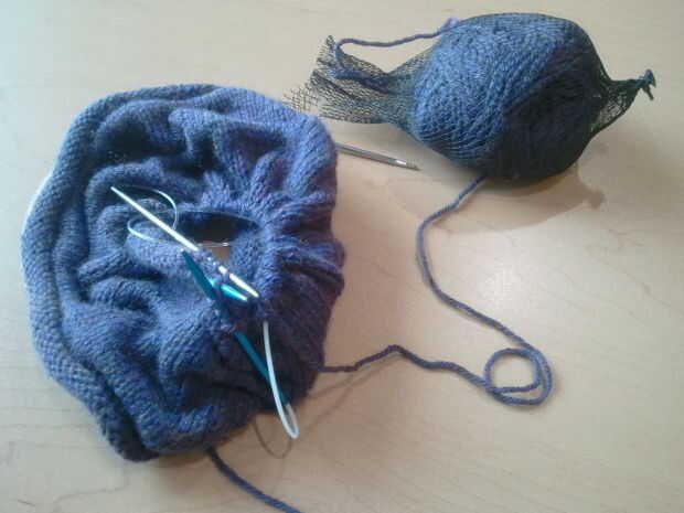 Coloque 12 stich marcadores 10 puntos de sutura aparte. ** Punto hasta los dos últimos puntos de sutura antes el marcador, luego tejer dos juntos. Marcador de hoja, repetir ** hasta el final de la fila. (Haciendo las disminuciones en el inicio de una sección marcada hace un remolino en sentido contrario. Hacer las disminuciones en el final de una sección marcada hace un remolino en sentido horario). Tejer la siguiente fila. Repetir las disminuciones de 20 filas, luego configurar el último conjunto de pliegues de una fila de punto. Hacer este último conjunto de puntos de sutura de pliegues 6 a ser proporcional a la disminución. Continuar a punto y hasta cerca de 8 puntos de sutura se dejan. (Me gusta la parte superior ligeramente puntiaguda. Si usted prefiere una tapa lisa, pare antes de 8 puntos de sutura a la izquierda.)