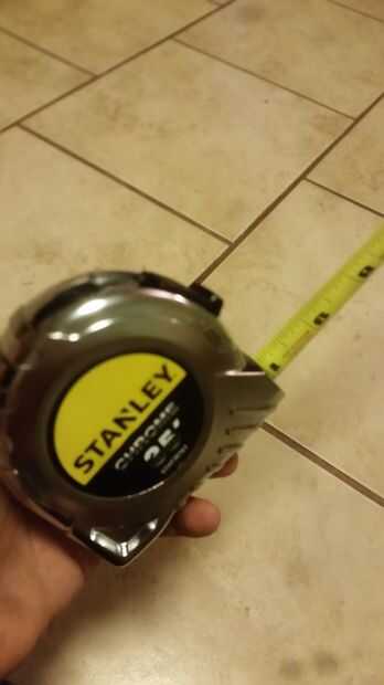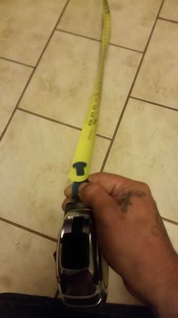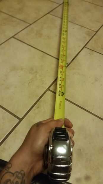 Tengo mi handy dandy cinta métrica y comenzó a tirar, tiró la recomendada 35' hasta que llegué a gancho negro al final la marca del pasado. Una vez hasta el final de la bodega la parte negra de la cinta la labor de gancho que el agujero en la cinta no puedo explicar cómo solo juego con ella, obtendrá tengo fe en ti, pero una cosa que nunca debe hacer es no LET GO del negro parte el gancho si haces la bobina se hace con su resorte y abertura que la cinta métrica no funciona lo he probado. Puse la cerradura hacia abajo y tenía algunas que ayuda sosteniéndolo, recomiendo una mano de ayuda.