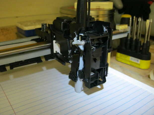 router CNC se hace de dos impresoras viejas y viejo reproductor de CD. He usadopiezas que encontré en el sótano, recoger un montón de electrónicay mecánicos que encuentro a la basura o en el internet.Hice la electrónica de componentes pasivos. No qui