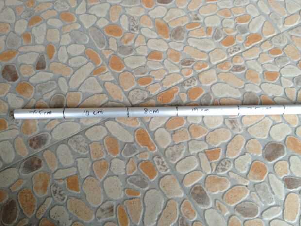 Corte y marque el tubo. Para mi pedal/bici, las medidas son de 75mm, 100mm, 80mm, 100mm y 75mm (profundidad del pedal, distancia a la tierra, pedal ancho, distancia a la tierra, profundidad del pedal)