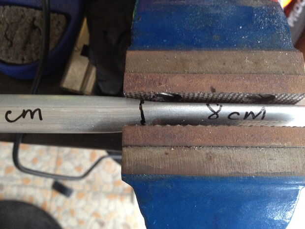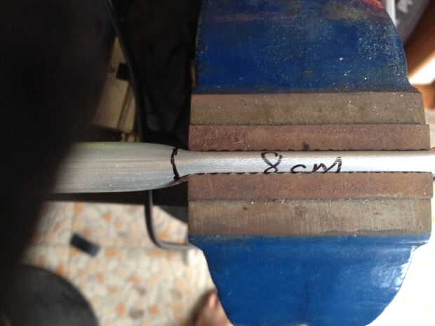 Empezar por la parte media de la flexión. Necesita engordar la parte media, pero extender la porción aplanada de unos 10mm más allá del punto de flexión. Esto le ayuda a doblar más fácil sin romperse el tubo.