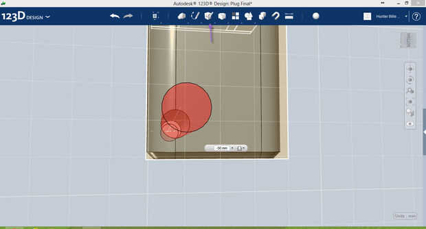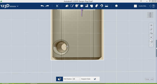 C) se utilizó uso filete para redondear el borde del agujero, para este modelo, un radio de 0,9 mm, repita este paso para el otro lado del agujero.
