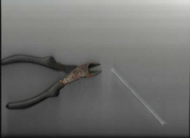 conseguir una pluma BIC y saque la cámara de tinta con pinzas o sus dientes, manos. Hacer un agujero en el centro de la pluma con un cuchillo. Entonces una goma y poner en el lápiz como se muestra en la imagen. Entonces la cámara de tinta a través de
