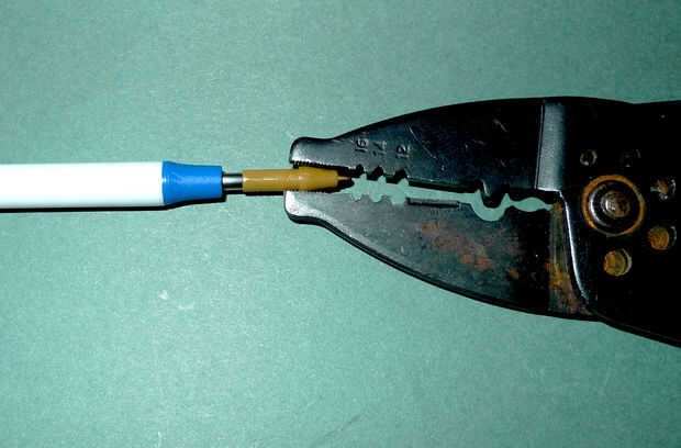 Usando algún tipo de alicates, eliminar la parte de la tinta de su pluma. No es sólo necesario para eliminar los que no quieren obtener todo sus manos.
