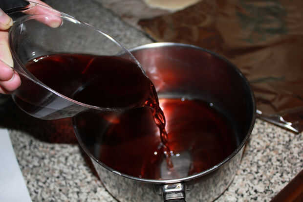 Medir hacia fuera 1 taza de su bebida de elección y vierta en la cacerola. Cubrir y tu a fuego medio-alto, poner el líquido a ebullición. Retire la tapa y reduzca el calor para que el líquido está todavía en ebullición constante. Dejar cocer a fuego lento durante 15-20 minutos, revolviendo de vez en cuando con la cuchara de madera hasta que haya reducido su cantidad inicial a 2 cucharadas digno de líquido. Retirar del fuego y vierta el pegote en la taza del microondas y colocarla en una bolsa de verduras congeladas, en el refrigerador hasta que se enfríe. Una vez hecho esto, puede transferir a su tintero limpio o frasco pequeño y refrigere hasta que esté listo para usarlo. Si no tienes un contenedor extra, simplemente guardarla en el recipiente apto para microondas, en la ' nevera, con la envoltura de plástico que la cubre.