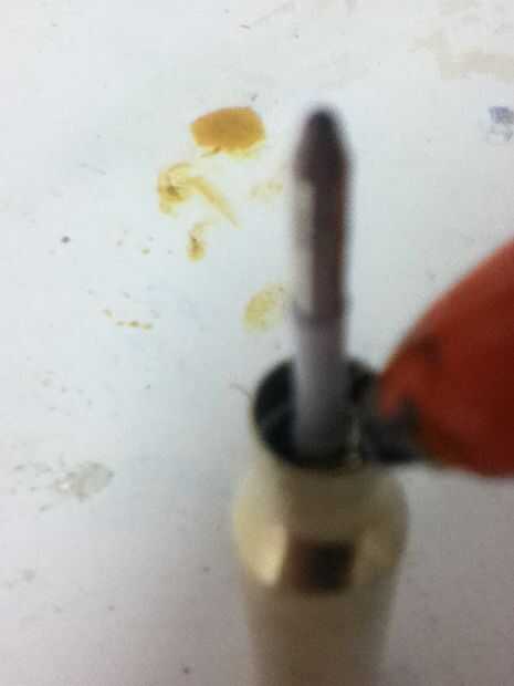 Caliente el tubo y el sedimento en lugar (Asegúrese de mantener el tubo de tinta permanente en el centro) del pegamento y deje secar.