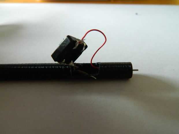 Motor cable positivo y el botón USB positivo al otro extremo de la soldadura. Cubrir los cables con pegamento caliente para asegurarse de que no hay ningún cortocircuito.