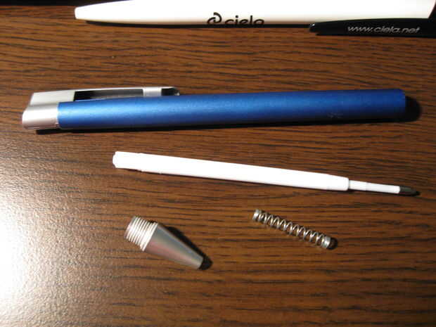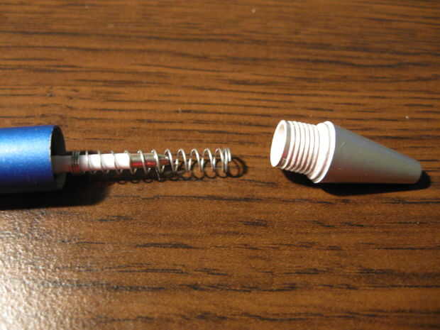 Paso 1: edificio Obtener una pluma de clic y eliminar la tinta y la primaveraPaso 2: construcción Estire el resorte un pocoPaso 3: montaje Poner el resorte en la parte de tinta y ponerlo en hacia atrás y disparar simplemente empuje la parte posterior