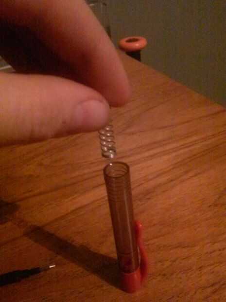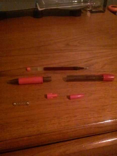 ahora tienes este 1 Inserte primero el abajo cosita de botón. 2 Inserte el resorte. 3 Introduzca lo espinoso/pinchos/impar