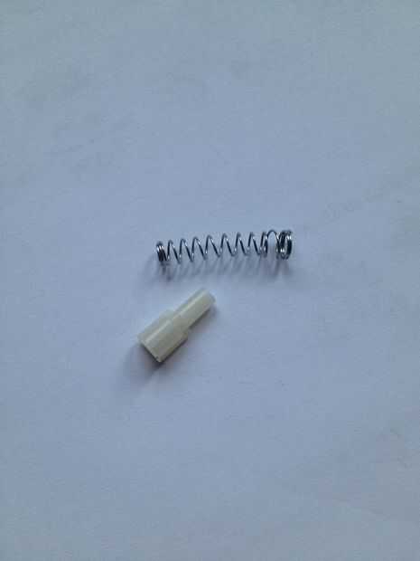 En primer lugar buscamos una pluma de primavera con una sección inferior "largo" con pérdida de espacio interior para la primavera (ver imagen). Idealmente usted quiere el 75% de la primavera en la pluma y el 25% hacia fuera cuando toca la parte inferior de la pluma con ninguna fuerza aplicada.