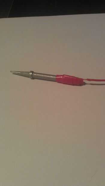 -Raya uno de los extremos del cable más corto. Conéctelo a la punta de su elección. Decidí usar cinta para esto. Así que hacerlo más fácil cabe la punta dentro de la pluma.