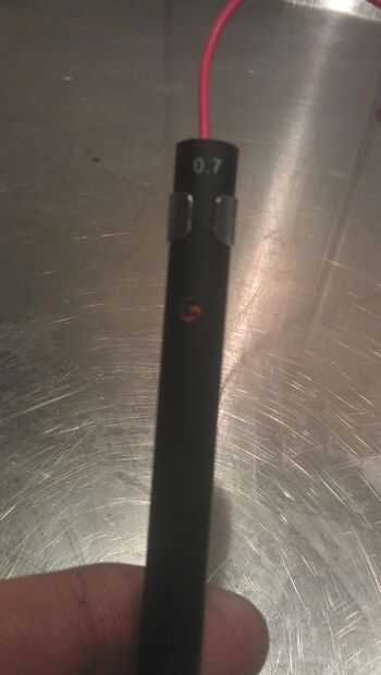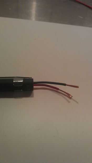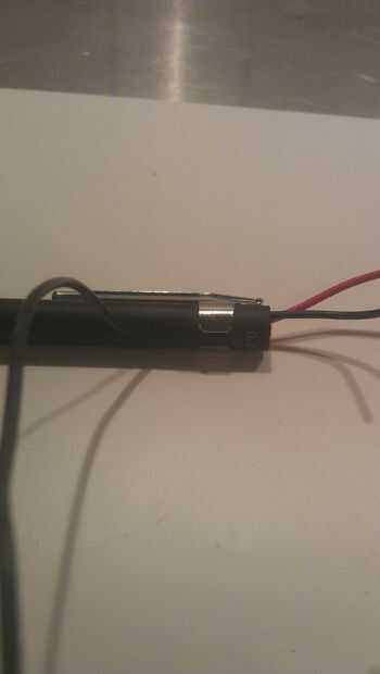 -Corte el cable que está conectado a la punta por lo que es sólo ligeramente más largo que el lápiz. Suficiente para hacer algunas soldaduras. Rellenamos todos los que los cables dentro de la pluma más tarde junto con un resistor.