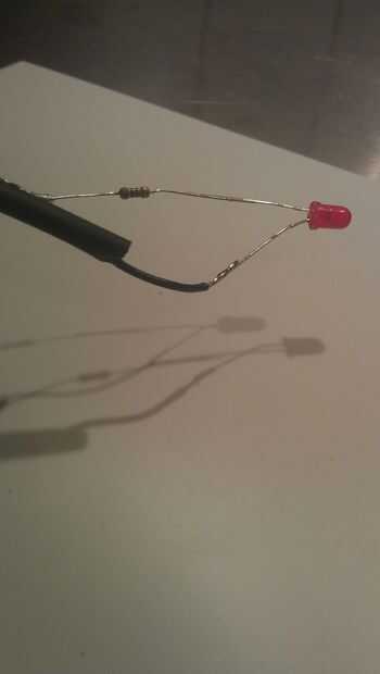 -Tire del cable que conduce a la tierra. Tenemos que utilizar algo de calor tubo retráctil para evitar cualquier cortocircuito. Que sea ligeramente más largo que el cátodo y ponga lo conecte en el cable. Esto también nos ayudará mantener el alambre en su lugar.