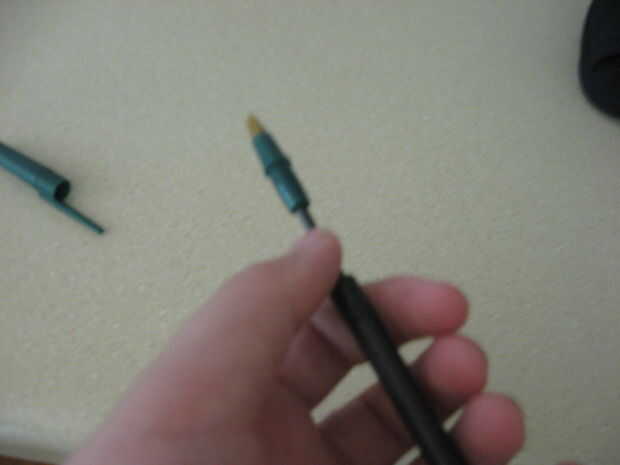 materialesUn bolígrafo BicUna gruesa banda de cauchoAlgo para crear un agujero(Yo usé el cuchillo que tenía en mano)Paso 1: DesmonteDesarmar la pluma y deshacerse de la pequeña tapa negraPaso 2: Crear el agujeroHacer un agujero lo suficientemente gra