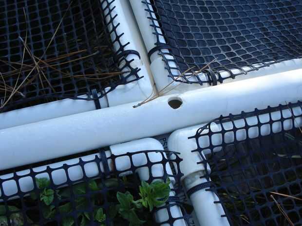 Después de tener el marco básico hecho, cortar un trozo de PVC de la misma longitud que el marco entero. Esta pieza será el montaje de las tapas. Usted tendrá que perforar algunos agujeros en un lado de la tubería, para atornillar en el marco. Utilice los tornillos de 3/4" tornillo en.