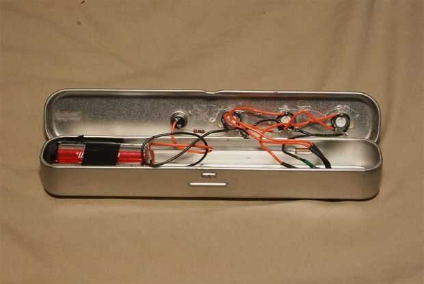 Ahora, no tenía un portapilas que cabrían dentro de mi recinto, por lo que sólo conecté los cables directamente a las baterías, cableado en serie. Planea tener espacio para un sostenedor de batería del AA, que hará la vida mucho más simple para usted.